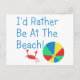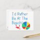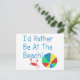 Caranguejo vermelho e beachball multicolorido. Texto em azul: Eu Preferencialmente Na Praia!