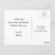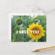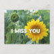 Este cartão-postal com tema de amor tem um estilo clássico de amor, com um texto personalizado, forte e ousado, "I miss you" , numa bela fotografia de um girassol amarelo e de um girassol verde sobre o fundo da folha verde. No outro lado do cartão-postal, há um doce que corresponde à imagem modelo do poema de amor. Um modelo de endereço é fornecido para sua conveniência. É uma escolha perfeita enviar uma doce e amorosa mensagem à sua amável especial num dia especial como Dia de os namorados, aniversário etc. Especialmente uma boa escolha para um casal numa relação de longa distância. Personalize-o para torná-lo especial.