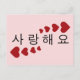 Um cartão postal com "Eu te amo" escrito em coreano.