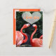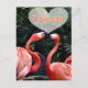 Dois belos flamingos, parecem que estão prestes a beijar ou abraçar com as palavras que Amo-te no centro de um coração sobre eles.
