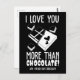 O texto humor de chocolate diz: "Eu te amo mais que chocolate e eu realmente amo chocolate". Gráfico branco.