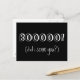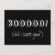 Cartão postal com o texto, "BOOOO! (eu te assustei?)" em branco sobre fundo preto. Excelente para o Halloween ou só para dizer oi. *Por padrão, defini este cartão postal para ser impresso em papel de acabamento de Matte não revestido. Você também pode escolher Semi-Gloss, mas o cartão-postal será impresso em um papel semirbrilhante em ambos os lados, que é um pouco mais difícil de escrever.