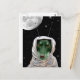 Outra fotografia fofa na série de cartões postais antropomórficos: As Aventuras de Ally, o cão Kelpie australiano. Aqui está ela no espaço, vestida como uma alienígena verde (extraterrestre) que veio em paz. Fotógrafo: Louise Docker Procure a Ally Series aqui com