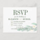 Uma ideia simples para que seus convidados possam facilmente responder a seus convites de casamento com um carrapato rápido na caixa ou visitando seu endereço de site na placa. Um cartão RSVP de casamento floral com folhagem de eucalipto. Verde com flores brancas. Todos esses detalhes extras, que precisam ser desconectados, podem ser personalizados neste cartão. A informação no verso é facilmente alterada para a sua. O script moderno é facilmente alterado para suas próprias informações personalizadas. Este cartão postal RSVP completa um design de suíte de casamento de Apenas Designs Finos.