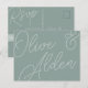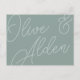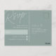 Projetado para corresponder aos nossos convites de casamento Script Watermark, este elegante cartão postal RSVP baseado em tipografia é perfeito para RSVPs de entrada tradicional. O design apresenta uma inscrição de script sobredimensionada no topo, em tons em tons de tons para um efeito de marca d'água. Personalize com a data de RSVP desejada e aceite e recuse a redação em caracteres clássicos de serif. A nossa via colorida Eucalyptus é uma mistura elegante de verdes empoeirados, com uma inscrição verde-clara e branca num fundo verde-sábio.
