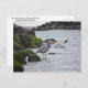 Cartão-postal "Excelente Azul Heron e Castanho Pelicano" de Catherine Sherman. Um herão azul excelente fica perto de rochas mossitas perto de Pelican Point, na Ilha Dauphin, Alabama. Ao fundo, um pelicano marrom engole um peixe. Além do pelicano, há um corvo-marinho duplo. A ilha de Dauphin é uma ilha de barreira situada na foz da Baía Móvel no Golfo do México.
