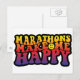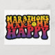Maratonas me fazem feliz! com um pequeno rosto em camisas, chapéus e canecas.