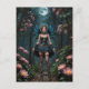Cartão Postal Fada de Flor numa Noite de Lua Completa