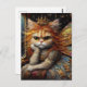 Uma fada de gato bonitinha com uma expressão irritada fica num trem entediado e pronto para estar no seu destino em vez de sentar em algum lugar atrasado em trilhos esperando que possam continuar a viagem