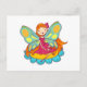 Uma fada bonito do jardim com um vestido cor-de-rosa e cabelos cor de laranja fluidos senta-se numa grande flor de azul e amarelo, uma design bonita de todas as idades certamente ama! Camisas de fada de jardim, fatos-macaco, bíblias, cobertores, cartões, canecas, bolsas, autocolantes, botões, ímãs, correntes-chave, mousépias, e muito mais!