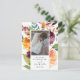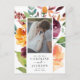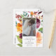 Esta foto floral, salvando a data, é perfeita para os casamentos outono. O tema do outono salve a data do cartão postal com lindas flores aquáticas e folhagem de outono em cores bonito como ameixa, ouro amarelo, pêssego e verde-azeitona. As flores de outono estão organizadas em um buquê atrás de uma foto e detalhes do casamento. Adicione detalhes adicionais do casamento, incluindo o site do seu casamento, à parte traseira do cartão.