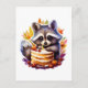 Cartão Postal Fall Raccoon com o 1º bolo de aniversário