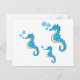 Criada por Rebekkah Fukumoto, esta design apresenta uma família de três cavalos azuis brincalhões soprando bolhas juntas. Um cartão postal adorável que colocará um sorriso no seu rosto!