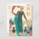 Estilo Art Deco Ilustração de uma jovem vestindo um vestido verde e preto observando pombas próximas por George Barbier. George Barbier 1882 - 1932 foi um dos ilustradores franceses excelentes do início do século 20. Ele é bem conhecido por suas comissões para design e fantasias de balé.