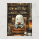 Cartão Postal Fantasma e Gato na Biblioteca com Café
