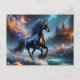 IA gerou arte de um cavalo meio árabe negro em uma cena de fantasia