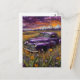 Cartão Postal Fantasy Retro Purple Vechicle em Montanha