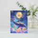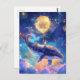 Uma garota segura um balão enquanto ela e uma baleia flutuam através das nuvens fantasia arte