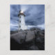 O farol na Cove de Peggy, na Nova Escócia, Canadá, ao anoitecer, enquanto cresce uma tempestade.