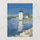 Cartão-postal do Farol Grindle Point. Este cartão-postal apresenta o Farol Grindle Point brilhando ao sol da manhã no final de um dia de primavera em Islesboro, Maine. A pintura usa uma paleta brilhante de azuis, verdes, cinzas e laranjas para criar uma vista linda e calma da torre única do farol quadrado e da casa do guarda-farol.