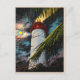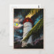 Farol chave da Flórida Ocidental na reprodução de cartões postais à noite com cores dramáticas, palmeiras, lua.