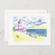 Cartão Postal Farol na canoa de pesca de praia oceano costeiro