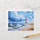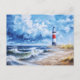 Cartão Postal Farol vermelho branco da costa do Mar Báltico. Art