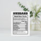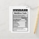 Cartão Postal Fatos Nutricionais do Marido Engraçado Piadas