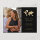 Este elegante e moderno casamento de destino salve os cartões postais de data com um simples design de texto preto e dourado que exude o estilo minimalista, com sua foto pessoal favorita. O design apresenta um mapa mundial ilustrado com ouro falso e as palavras "reservar o bilhete" em um fundo preto.