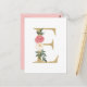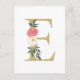 Cartão Postal Faux Gold Foil - Letra E Blush Monograma Floral