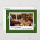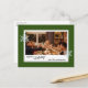 Cartão de Férias Único, clássico, de moda, bonito e decorativo. Texto e sala de saudação de Feliz Natal para personalizar ou personalizar com uma foto, um nome de família (ou nomes individuais) e uma mensagem de sua escolha, enquadrados por dois flocos de neve coloridos de cor prateada em um fundo verde de floresta escuro clássico.