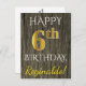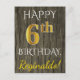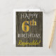 Cartão Postal Faux Wood, Faux Dourada 6 Birthday + nome personal