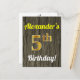 Cartão Postal Faux Wood, Faux Dourado 5 Birthday e nome personal