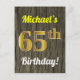Cartão Postal Faux Wood, Faux Dourado 65.º Aniversário e Nome Pe