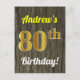 Cartão Postal Faux Wood, Faux Dourado 80 Birthday e nome persona