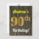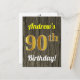 Cartão Postal Faux Wood, Faux Dourado 90 Birthday e nome persona