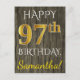 Cartão Postal Faux Wood, Faux Dourado 97.º Aniversário + Nome Pe