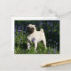 Cartão Postal Fawn Pug Standing in the Bluebells