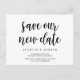Esta é a Festa de casamento ou qualquer convite para comemoração Reprogramado (adiado/adiado) cartão postal (salve nossa nova data), na design rustica moderna com tema, Black. É a melhor e perfeita maneira de fazer o anúncio de reagendamento do evento para sua família e amigos.