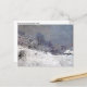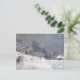Um cartão postal de arte fina com a pintura impressionista, A Estrada em Frente à Fazenda Saint-Simeon no Inverno (1867), de Claude Monet (1840-1926). Uma paisagem de uma estrada coberta de neve por uma casa de fazenda no campo.