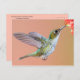 Cartão-postal com uma bonito fêmea verde-clara e esfolada, beija-flor-cauda-raquete, que se alimenta de uma flor de laranja numa floresta equatoriana de nuvens. Além de suas manchas verdes, esta pequena beleza esportiva bronzeada penas e botas de penas brancas pufas das pernas. Belo cartão para beija-flor, natureza e amantes de jardim. Foto tirada em Tandayapa, Equador.