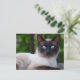 Fechar um Gato Siamês com Cartão-Postal Azul