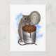 Rato engraçado de desenho animado com uma lata aberta de feijão assado.