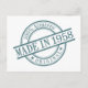 Com um logotipo redondo verde em borracha estilo carimbo com “Cem Por Cento Autêntico” escrito no topo e “Original” na parte inferior, ladeado por estrelas de cada lado, e “Feito em 1958” escrito na frente entre duas linhas em ângulo, este é o cartão de saudação perfeito para enviar a qualquer pessoa nascida no ano de 1958.
