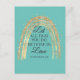Cito Corinthians Deixe que tudo que você faz seja feito com amor." Com o estilo brilhante Boho arco-íris em fundo turquesa.