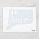 Com o contorno do estado preenchido em azul e o texto Feito em Connecticut em letras brancas em negrito, qualquer 'nutmegger' será lembrado de casa ao receber este cartão postal.