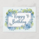 Cartão Postal Felicidades Flores de Hortênsia Azul Aquarela