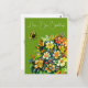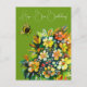 Feliz Aniversário! Flores felizes e abelha pintadas com aquarelas.