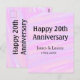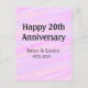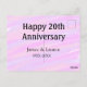Cartão Postal Feliz 20º aniversário rosa roxo pastel nome bol