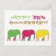 Cartão Postal Feliz 3º Aniversário Elefantes Silhueta Neon